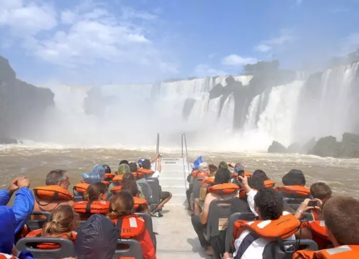 Je ziet de reusachtige watervallen van onderaf en aan het eind vaar je onder een van de kleinere watervallen door, zodat je kunt opscheppen dat je een douche hebt genomen in de Watervallen van de Iguaçu! Natuurlijk beslis je helemaal zelf of je zin hebt om je midden tussen de watervallen te begeven. Maar je zult hoe dan ook onderweg zeker doorweekt raken, dus het is een goed idee om je om te kleden in zwemkleding of een regenponcho te dragen. Je krijgt een waterdichte tas voor je waardevolle spullen.