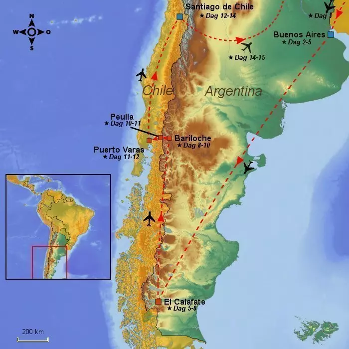Van hieruit gaat de tocht naar de onbeschrijfelijke schoonheid van Patagonië met een bezoek aan nationaal park Los Glaciares, met machtige gletsjers, waaronder Perito Moreno. Vanuit het kale, winderige landschap gaat de tocht verder naar het idyllische Bariloche, dat wordt omgeven door diepblauwe meren en besneeuwde bergen in het weelderige merengebied.