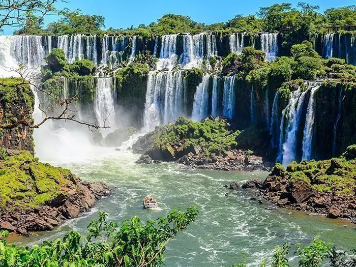 De Watervallen van de Iguaçu vormen de grootste waterval ter wereld en bestaan uit 275 watervallen van verschillende grootte, gelegen op een 2,7 km lang hoefijzervormig stuk van de rivier de Iguazú. De watervallen komen regelmatig samen en storten in luidruchtige cascades over de op sommige plaatsen 85 meter hoge kliffen.