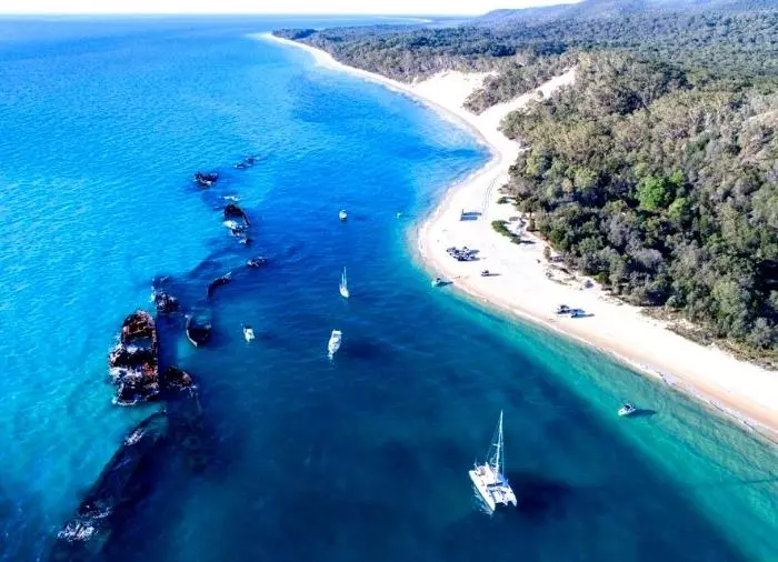 Na een boottocht van iets meer dan een uur komt u aan op Moreton Island en u heeft de hele dag om het eiland te verkennen. Het startpunt is Tangalooma Island Resort, waar u tegen betaling activiteiten kunt doen, variërend van Segway-tours, snorkelen, kajakken, suppen, rondleidingen over het eiland en nog veel meer. U kunt er ook voor kiezen om gewoon te genieten op het strand, te tennissen en proberen te boogschieten. Met een beetje geluk ziet u de beroemde dolfijnengroep van het eiland.