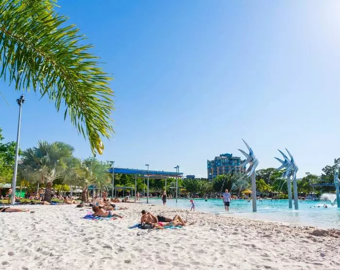 Cairns is een levendige kuststad in het noorden van Queensland en de stad is wel het bekendst als de toegangspoort naar het Great Barrier Reef, het grootste koraalrif ter wereld. De stad biedt ook talloze activiteiten, cafés, restaurants en winkels. Er is geen strand, maar om dit te compenseren is er in het midden van de stad een grote kunstmatige lagune aangelegd, waar u kunt zonnen en zwemmen.