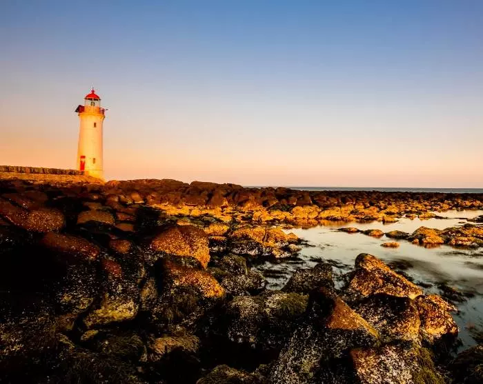 En heeft u nog niet genoeg van adembenemende uitzichten, rijd dan langs de vuurtoren van Cape Otway en zie hoe de kleuren veranderen bij zonsondergang.