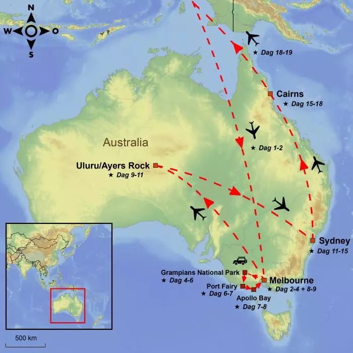 Ga mee op een self-drive avontuur langs een van de mooiste kustlijnen ter wereld, de Great Ocean Road. Beleef de twee grootste steden van het land, Melbourne en Sydney, de eindeloze rode woestijn met Uluru en sluit af met ontspanning in een tropische omgeving in Cairns.