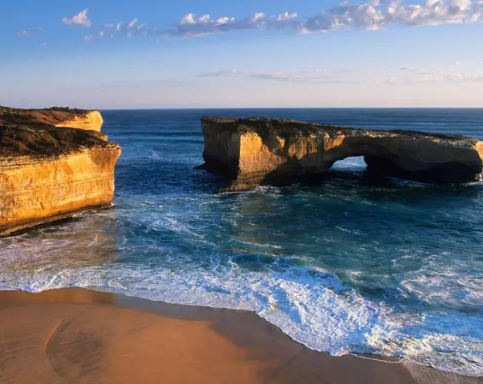 Hierna ziet u constant plekjes om foto’s te maken. Net voordat u aankomt in het charmante kreeftenvissersdorp Port Campbell, vindt u de London Bridge, een iconische formatie op deze route. Ooit was het een dubbele boog die leek op de London Bridge, maar die stortte in 1990 in en vormt nu een gescheiden landmassa, die nog steeds een fotostop waard is.
