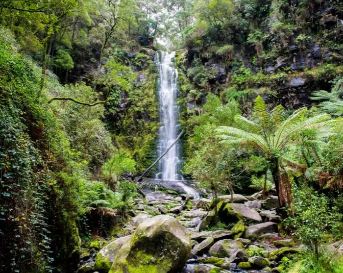 Wij raden ook aan om een stop te maken bij de sprookjesachtige waterval Erskine Falls, die is omgeven door weelderig regenwoud, net buiten de stad Lorne.