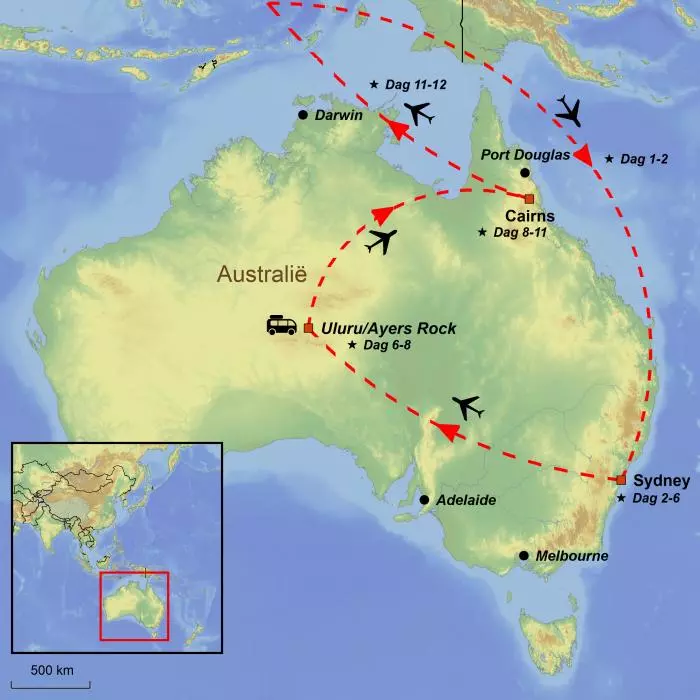 Op deze reis beleeft u alle absoluut grootste hoogtepunten van Australië. Vanuit Sydney, één van de mooist gelegen steden ter wereld, reist u naar de dorre woestijn met Uluru als (letterlijk) middelpunt. Hier ziet u de zon ondergaan en opkomen boven Uluru en gaat u wandelen bij Kata Tjuta.