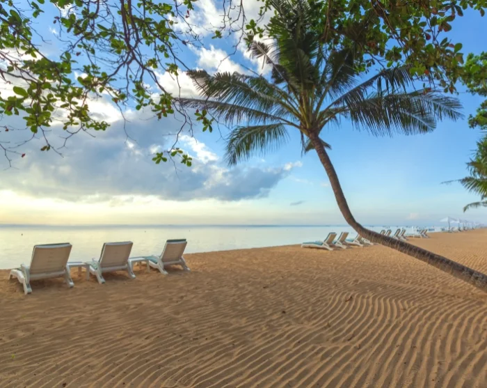 De grote trekpleister is het 5 km lange en brede, goudkleurige zandstrand, dat bekend staat om zijn kalme water en rustige golven. Het is een zeer kindvriendelijk strand. Het koraalrif bij het strand breekt de golven en zorgt er voor dat het water aan het strand rustig en kalm is. Langs het strand ligt de boulevard, waar u heerlijk kunt wandelen, hardlopen en fietsen. Hier liggen ook winkeltjes met o.a. houtsnijwerk, kleding en andere souvenirs.