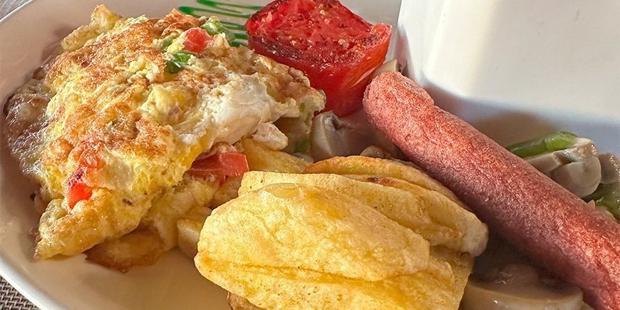 De Tanzaniaanse keuken biedt een verrassende variatie aan smaken, beïnvloed door de vele verschillende culturen en regio’s van het land. Ons ontbijt werd telkens vroeg geserveerd en bestond uit brood, gebak en eieren. Elke accommodatie had haar eigen keuze aan omeletten om de dag lekker te beginnen voordat we op gamedrive gingen. Vers fruit was er altijd bij, en vooral ananas en watermeloen zagen we elke ochtend terug. Op sommige ochtenden kregen we een ontbijtpakket mee zodat we extra vroeg op pad konden om de schuwe nachtdieren te spotten (ja, nijlpaarden – jullie bedoel ik). Dat ontbijtje aten we boven op de jeep, met uitzicht over de uitgestrekte vlaktes van de Serengeti.