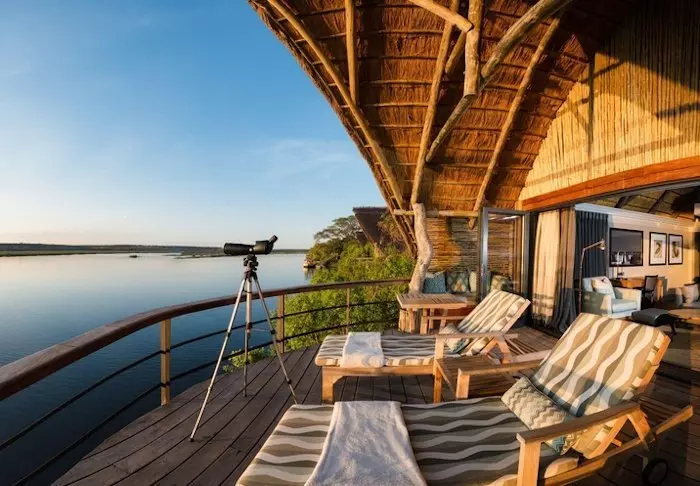Alle 15 villa’s zijn gebouwd op palen in de Chobe-rivier. Vanaf de grote balkons is er een uniek uitzicht op de rivier en het grote eiland Sedudu, dat midden in de rivier ligt. Eigenlijk hoeft u uw terras niet eens te verlaten als u hier bent. De hele dag kunt u hier zitten en genieten van het leven in de rivier. Olifanten die komen baden; boten die langs varen met toeristen; nijlpaarden die in het water plonzen en vogels die op de terrasleuning komen zitten. Krijgt u dorst, dan kunt u een greep doen in uw eigen minibar, die gevuld is met koele drankjes.