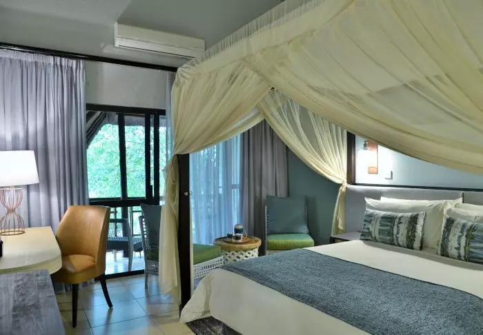 De lodge telt 44 kamers, alle met de voorzijde richting de rivier. Ze zijn voorzien van een eigen terras, airconditioning, kluisje, gratis minibar, thee- en koffiefaciliteiten, zaklantaarn en paraplu – ja, overal is aan gedacht!