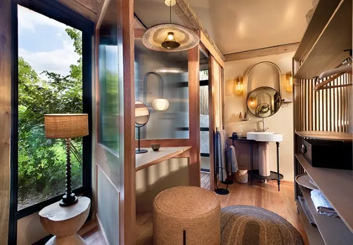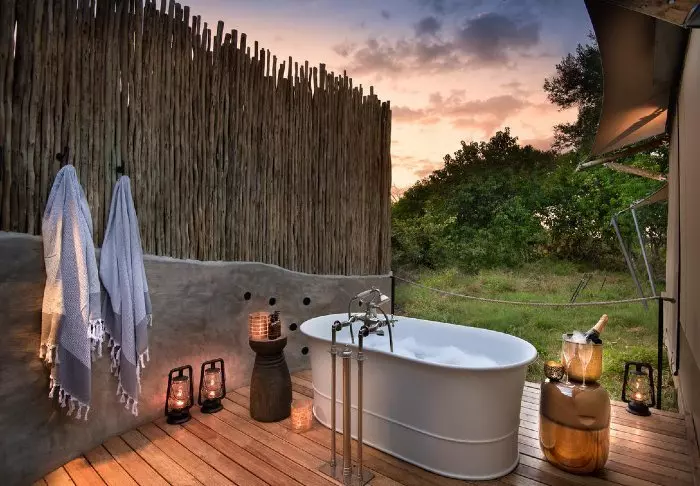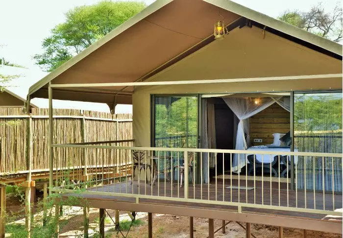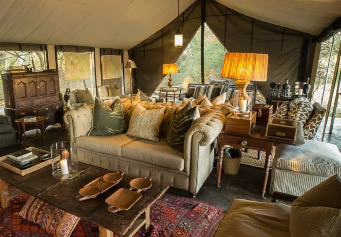 De 16 tenten hebben elk eigen badkamer met vrijstaand bad, airco, thee- en koffiefaciliteiten en eigen balkon. De tenten zijn allemaal gebouwd platformen die op palen staan, zodat de lucht onder de tenten kan circuleren. Alle tenten zijn hetzelfde ingericht – het enige verschil is of u uitzicht wilt op de rivier of op de tuin.