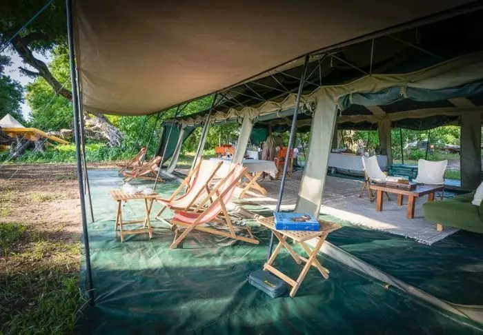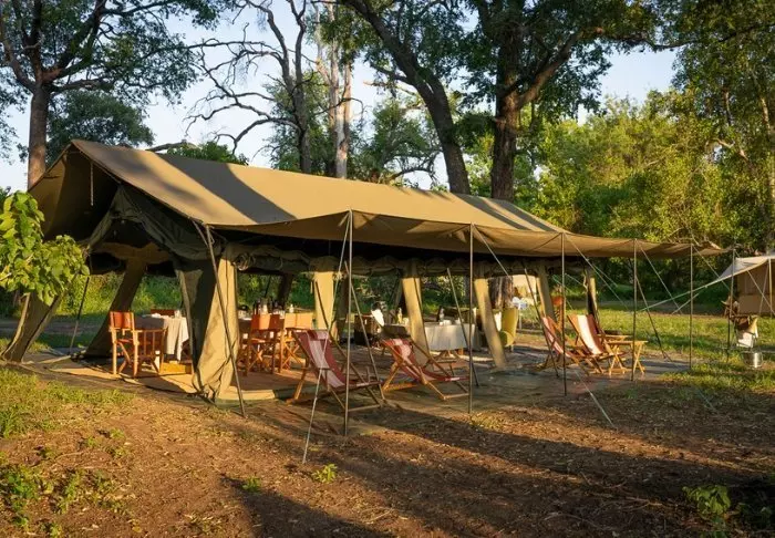 In deze twee camps, die dichtbij elkaar liggen, maar zelfstandig functioneren, staan in totaal 14 heerlijke tenten klaar, klassieke safaritenten, maar met (zonnepanelen-)elektriciteit, een eigen badkamer en een privé buitendouche met warm water. Vanuit uw tent kijkt u naar de rivier of de open savanne, waar u met een beetje geluk in de loop van de dag de dieren langs ziet komen. De maaltijden gebruikt u in de gezellige ‘messtent’ of onder de open hemel en ‘s nachts wordt u gegarandeerd wakker van de dierengeluiden, die ongehinderd doordringen door het tentdoek.
