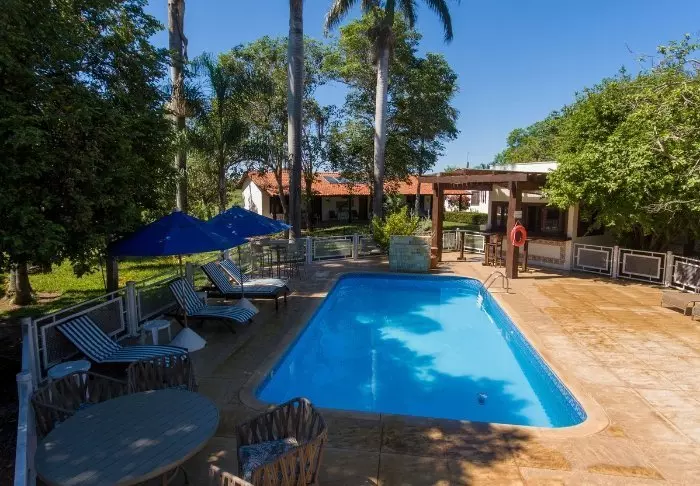 Op het midden van de dag is het tijd voor “siësta” in de lodge waar je kunt ontspannen bij het kleine zwembad onder het genot van gekoelde drankjes van de bar.
