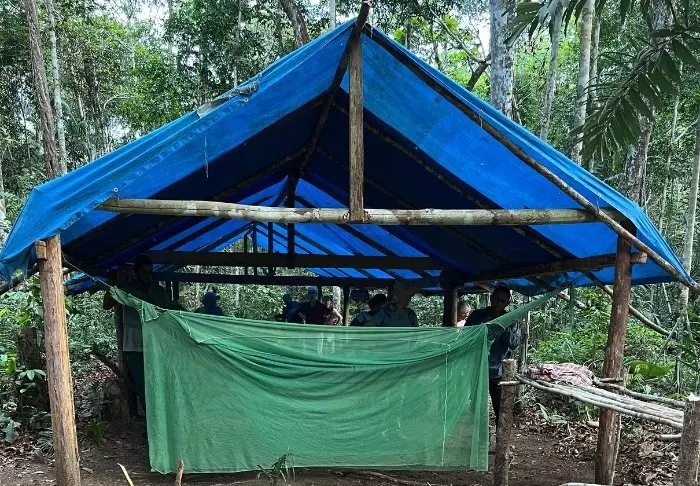 Samen met je gids en andere gasten van de lodge maak je een wandeling van 15 minuten de jungle in totdat je het gebied bereikt waar het kamp voor de nacht wordt opgezet. Hier hang je je meegeleverde hangmat en klamboe op onder een zeil, waar je de nacht doorbrengt. Je krijgt ook een deken voor de nacht.
