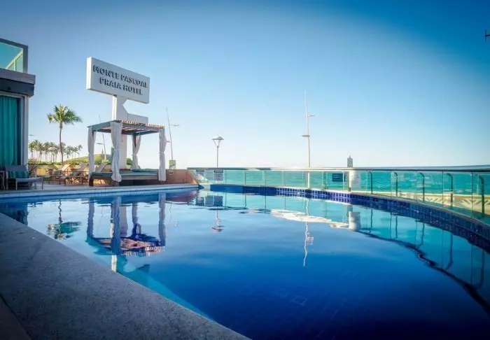Het zwembad van het hotel bevindt zich ook op de bovenste verdieping, waar je kunt zwemmen in het zwembad of ontspannen in een ligstoel met uitzicht op Copacabana.