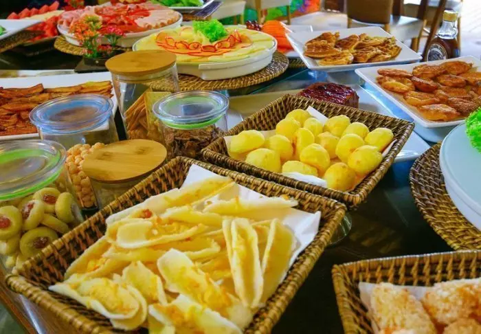 Het ontbijt wordt op het gewenste tijdstip op de kamer geserveerd en bestaat uit huisgemaakt brood, fruit en lokale lekkernijen, zoals tapiocapannenkoeken.