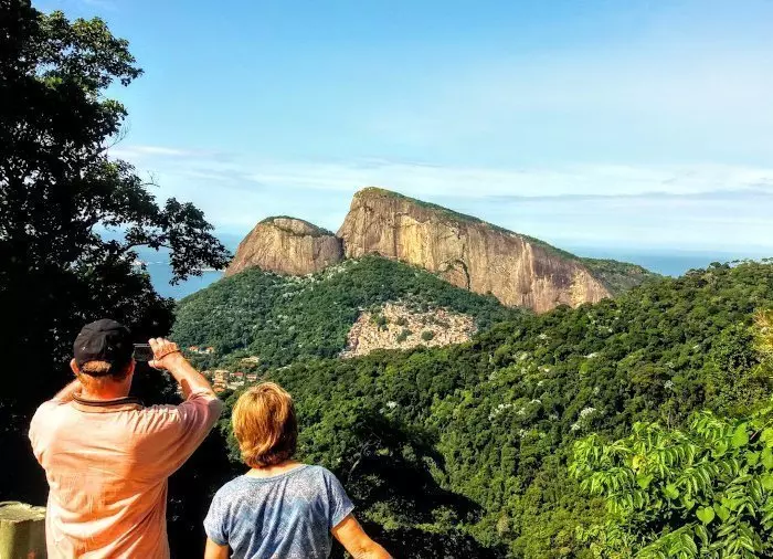 De eerste stop op de tocht is het stadspark Penhasco Dois Irmãos, vanwaar je kunt genieten van het adembenemende uitzicht op de rotsformatie Morro Dois Irmãos aan de ene kant en op de stad en de stranden van Ipanema en Leblon aan de andere kant.
