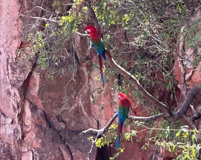 Vanaf de kristalheldere rivieren gaat de excursie naar Buraco das Araras, een groot zinkgat met een omtrek van wel 500 meter en een diepte van ongeveer 100 meter. Het zinkgat ligt in een schilderachtige natuurlijke omgeving, maar de belangrijkste attractie zijn de prachtige en krijsende groenvleugelara’s (Ara chloropterus) die hier leven en hun nesten bouwen in de rotsspleten.