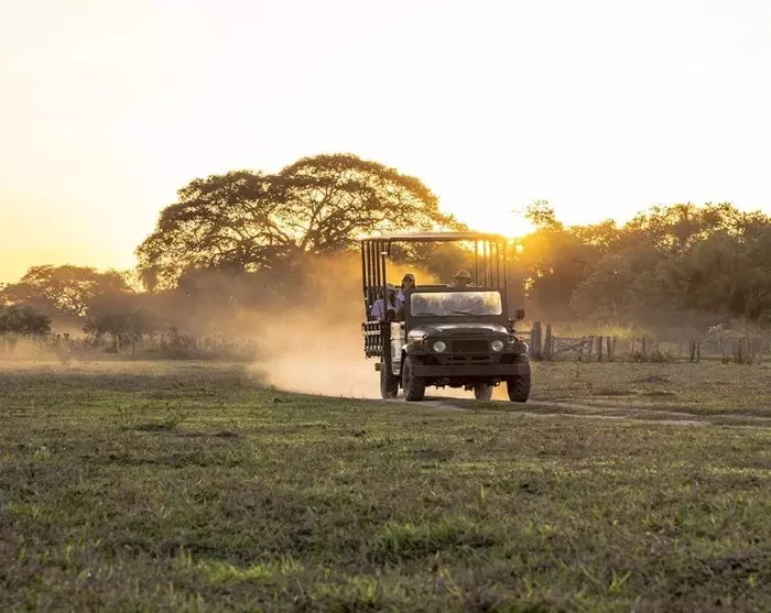 Jeepsafari, waarbij je door het gebied rijdt in open safariauto’s zoals je die kent uit Afrika, en op zoek gaat naar dieren als pampaherten, nandoes (van de struisvogelfamilie), krabbenetende vossen, miereneters en tapirs.