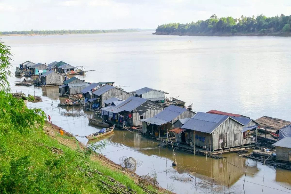 De Mekong rivier stroomt ongeveer 4.500 km door 6 landen, waaronder Cambodja.