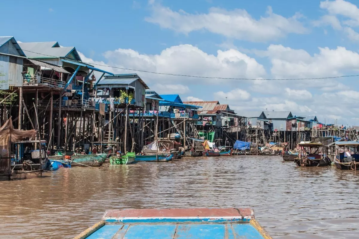Hier gaat u aan boord van een boot en vaart naar Kompong Phluk, een van de vele vissersdorpjes. Hier krijgt u meer te horen over hoe de vele families leven van voornamelijk de visserij. De families wonen in de karakteristieke huizen op hoge palen vanwege de hoge waterstand in het regenseizoen; de straatjes van het dorp veranderen dan in kleine kanalen. In het droge seizoen met de lage waterstand kunt u hoge palen gewoon zien.
