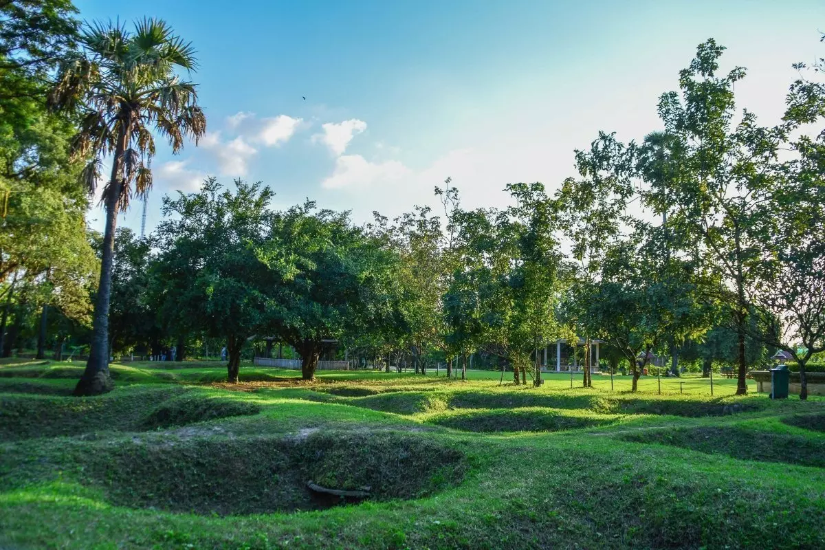 Ongeveer 15 km buiten Phnom Penh, is de laatste stop van deze excursie, een heftig en ontroerend bezoek aan Choeung Ek, dat deel uitmaakt van ‘The Killing Fields’. Op het heuvelachtige terrein van Choeung Ek liggen de massagraven van de meer dan 17.000 mensen, die door de Rode Khmer zijn vermoord. Choeung Ek is tegenwoordig een monument voor hen die stierven – en voor hen die het Rode Khmer-regime overleefden. Na dit bezoek gaat u terug naar uw hotel.