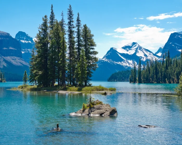 Tijdens de tocht kom je dicht bij het wereldberoemde Spirit Island, dat alleen per boot bereikbaar is. Hier stap je uit om de rust te ervaren, prachtige foto’s te maken en het bijzondere licht te bewonderen dat dit eiland tot een van de meest gefotografeerde plekken van Canada maakt.