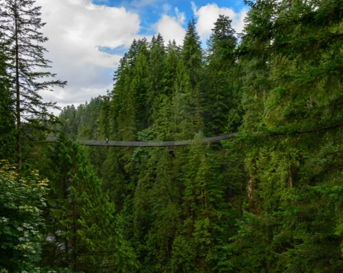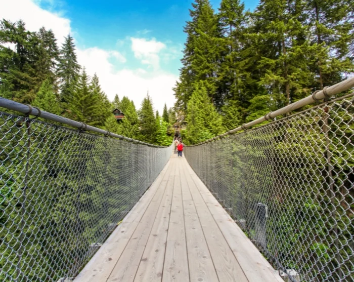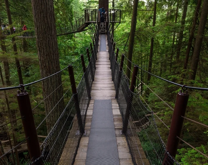 Beleef de natuur op drie unieke manieren in Capilano Suspension Bridge Park en ga met ons mee op avontuur. Je begint met een wandeling over de wereldberoemde hangbrug, die 70 meter boven de Capilano-rivier hangt – een iconische trekpleister die bezoekers al sinds 1889 een adrenalinekick bezorgt.