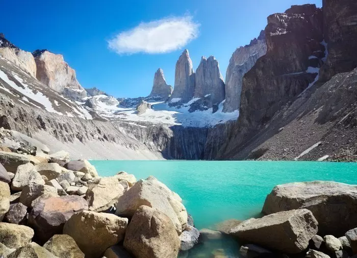 Langs de route steek je ijskoude bergbeekjes over en wandel je langs morenen die in de loop van de tijd door gletsjers zijn afgezet. Het laatste deel brengt je omhoog en is zeer oneffen, en op sommige delen van de route zijn er zeer steile afdalingen, die zwaar kunnen zijn voor de knieën. Maar de beloning is groot wanneer je de “Base de Las Torres” bereikt aan de voet van de verticale granieten torens, Torres del Paine, waarnaar het nationale park is vernoemd. Hier eet je je lunchpakket en heb je de mogelijkheid om foto’s te maken van het geweldige landschap voordat je weer op dezelfde manier teruggaat. Na een lange dag wandelen word je teruggebracht naar je hotel.