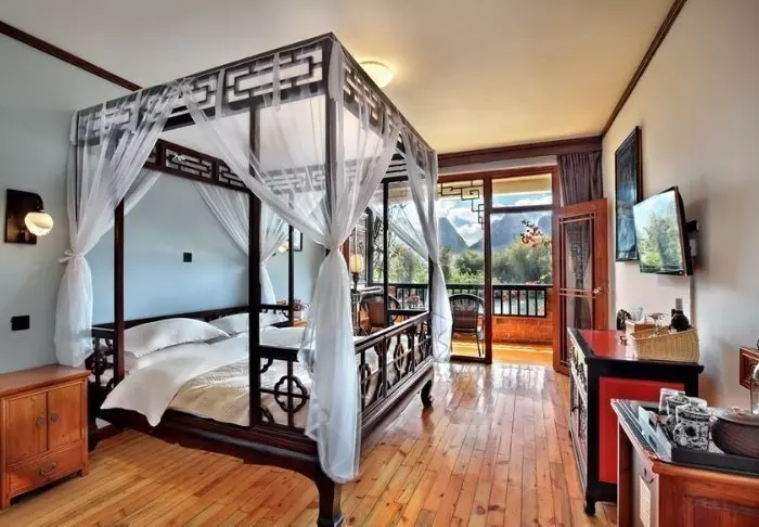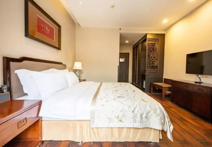 De stijlvolle kamers zijn ingericht met traditionele Chinese bedden en met rustgevende kleuren aan de muren. Elke kamer heeft airconditioning, minibar, kluisje, wifi en een eigen badkamer, maar er is geen tv of telefoon zodat u optimaal kunt genieten van de prachtige en ontspannende omgeving.
