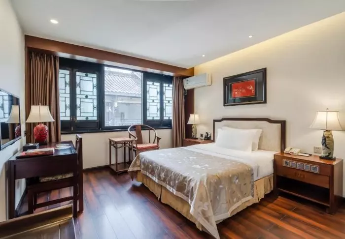 De kamers zijn elegant ingericht in Chinese stijl met houten meubels en mooie details. Ze zijn allemaal uitgerust met moderne faciliteiten zoals airconditioning, wifi, een kluisje, thee- en koffiefaciliteiten en een flatscreen-tv. De badkamers zijn modern en onlangs gerenoveerd. Hier vind je een badjas, slippers, föhn en diverse toiletartikelen.