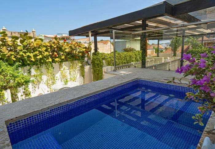 In het centrum van het hotel ligt een klein zwembad waar je kunt genieten van een verfrissende duik in de middaghitte van Cartagena.