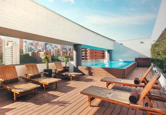 Op het dakterras van het hotel kunt u heerlijk ontspannen in de jacuzzi of genieten van de zon en het prachtige uitzicht over de skyline van Medellín.