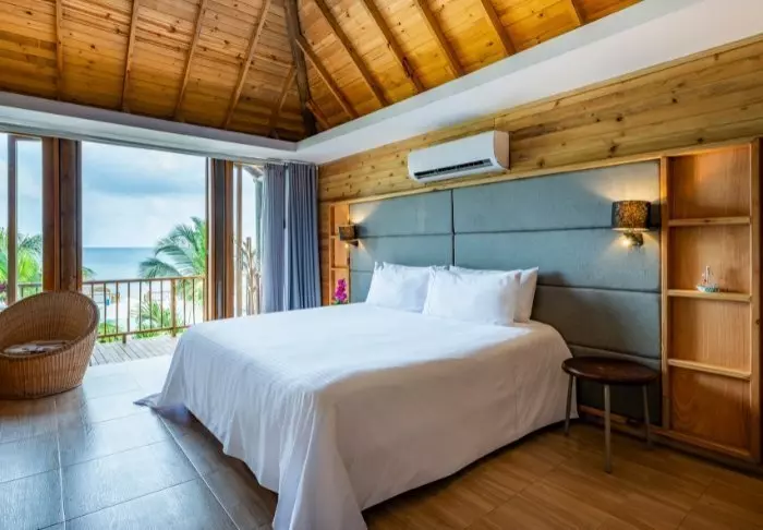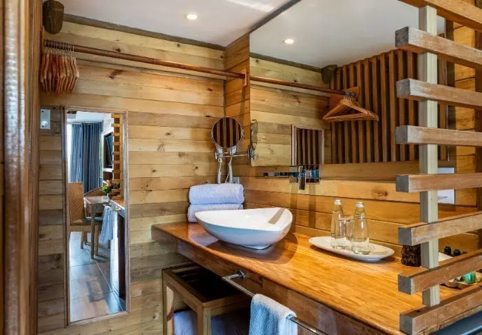 Met slechts 42 kamers garandeert het hotel een gezellige en intieme sfeer. Elke kamer is gebouwd met hout en bamboe, en past perfect bij de natuurlijke omgeving. De kamers zijn uitgerust met airconditioning, wifi, satelliet-TV, een minibar/koelkast, een kluis en een eigen badkamer met toiletartikelen.