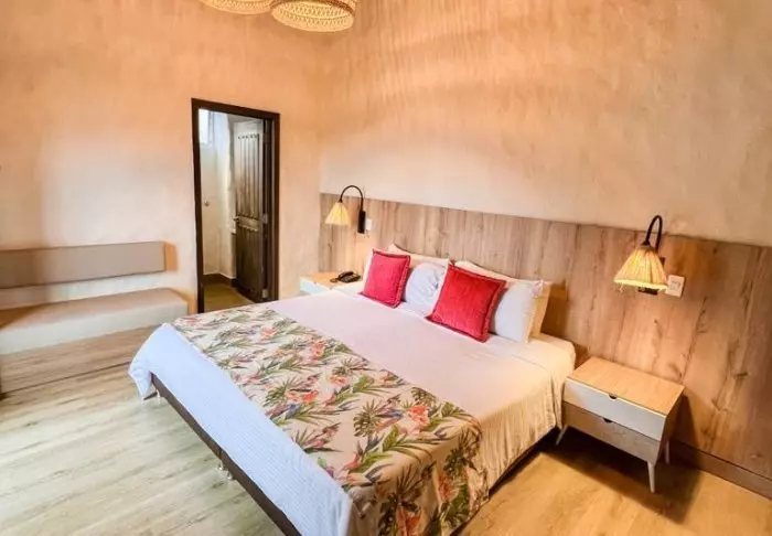 Alle kamers zijn ruim en uniek ingericht met meubels die zijn gemaakt van duurzame materialen en ontworpen door lokale ambachtslieden. De kamers hebben airconditioning, een plafondventilator, een tv, een koelkast en een eigen badkamer met haardroger. Er is ook gratis wifi in het hotel.