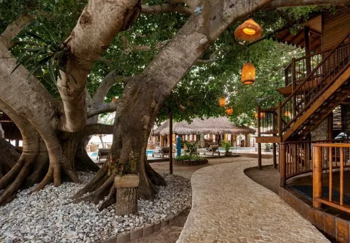 Naast het feit dat het hotel genesteld is in een tropische tuin en omgeven is door palmbomen en een mangrovebos, beschikt het hotel ook nog eens over een eigen privéstrand. Hier kunt u ontwaken met het turquoise water en het zachte geluid van golven die tegen de kust slaan.