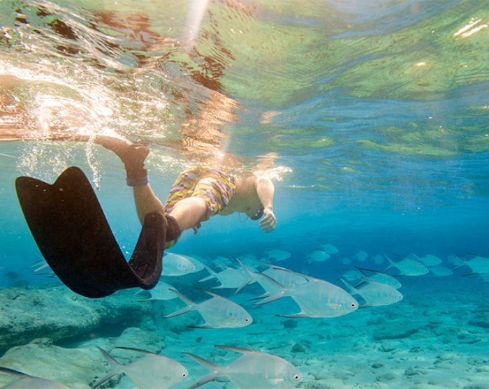 Hier kunt u zwemmen, snorkelen, kajakken of gewoon ontspannen in de zon en genieten van heerlijk eten en exotische drankjes.
