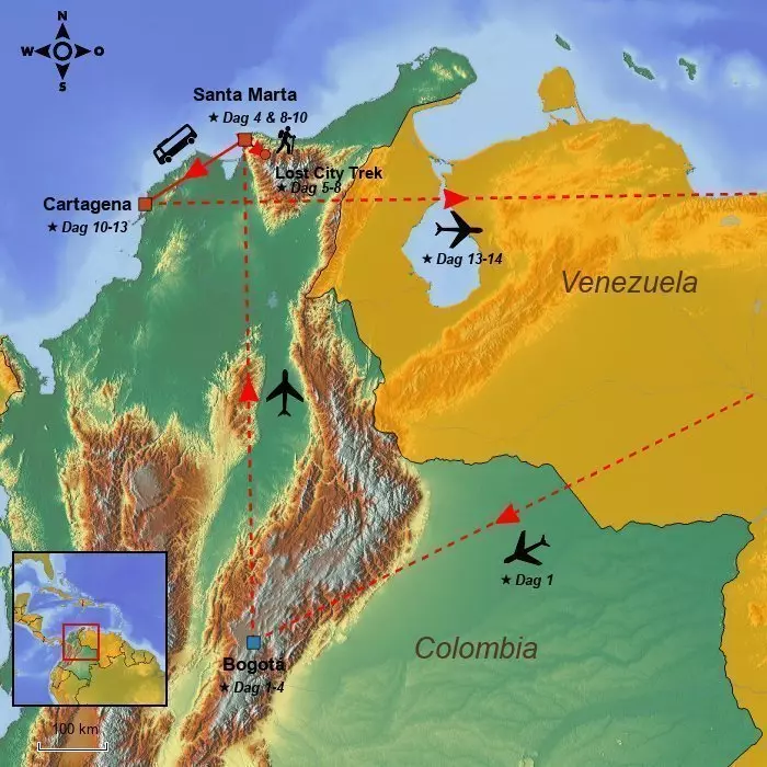 Vandaag gaat de reis naar Santa Marta, dat een schilderachtige locatie heeft aan de Caribische kust aan de voet van de bergketen Sierra Nevada. Je wordt opgehaald bij je hotel en naar de luchthaven gebracht. De vlucht duurt ongeveer 1,5 uur.