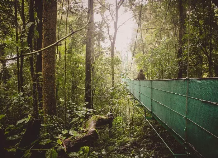 Er wacht je een prachtige wandeling van ongeveer 2,5 kilometer in de boomtoppen van het sprookjesachtige nevelbos. Terwijl je over de hangbruggen tussen de bomen loopt, voel je de zeer speciale en mysterieuze sfeer die de nevel in dit betoverende landschap creëert. Je wordt omringd door orchideeën, varens, mossen, enorme bomen en talloze plantensoorten die op de boomstammen groeien. In de boomtoppen van het magische bos kwetteren kleurrijke vogels, zoals de goudbrauworganist, de koperkopsmaragdkolibrie, de prachtige quetzal en meer dan 400 andere vogelsoorten die het bos tot een paradijs voor vogelspotters maken.