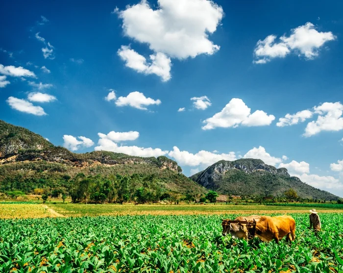 In de middag bezoek je de hoogtepunten van de Viñales-vallei. De excursie begint met een heerlijke lunch in een traditioneel Cubaans restaurant. Wanneer je honger is gestild, word je door je gids begeleid naar een kleine tabaksplantage, waar je een fascinerend inzicht krijgt in het werk van de tabaksboeren die de wereldberoemde sigaren van Cuba produceren. Het Viñales-gebied staat bekend omdat het de beste tabaksplanten van het land heeft. Hier komt de tabak voor de beroemde sigarenmerken Cohiba en Montecristo vandaan.