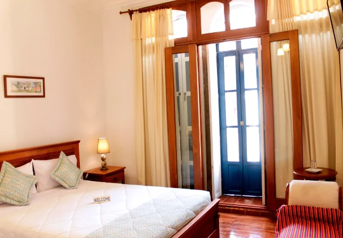De kamers van het twee verdiepingen tellende hotel liggen rond twee met glas overdekte binnenplaatsen, die zorgen voor een prachtig licht en een unieke charme. De 32 ruime kamers zijn ingericht met prachtig donkerhouten meubilair en hebben allemaal airconditioning, een kluis, wifi en een volledig uitgeruste badkamer met een haardroger.