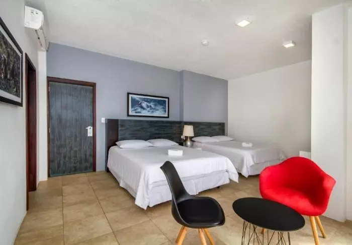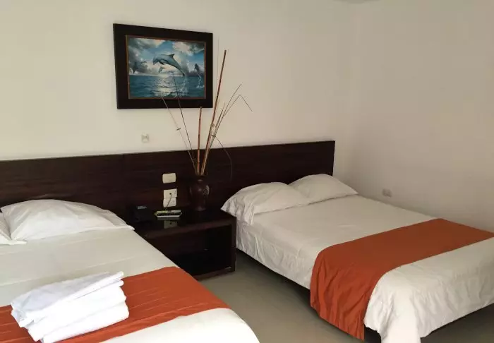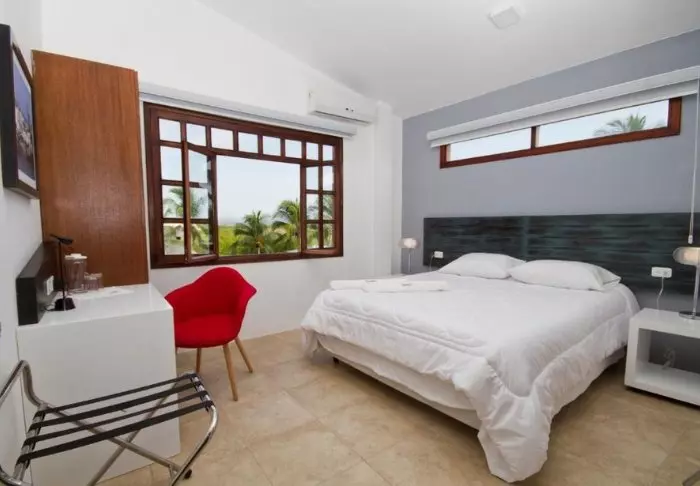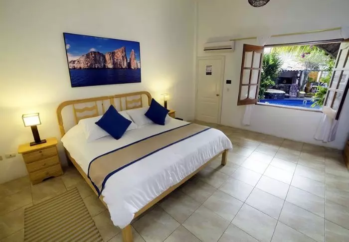 Er zijn hier slechts 16 kamers (4 standaardkamers en 12 standaardkamers met zeezicht). De kamers zijn eenvoudig ingericht, maar mooi en schoon met kleurrijke foto’s van de natuur en wilde dieren van de Galapagoseilanden aan de wanden. Alle kamers hebben een eigen badkamer, airconditioning, wifi en kabel-tv.