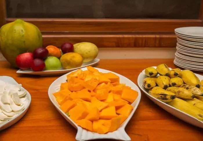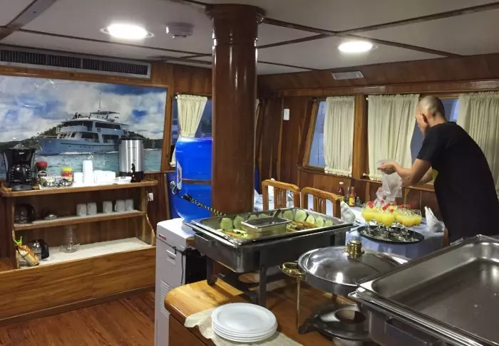 Alle maaltijden van de dag worden in het restaurant geserveerd als buffet. Gratis water, koffie en thee zijn de hele dag beschikbaar. De boot heeft ook een kleine bar waar je drankjes kunt bestellen.