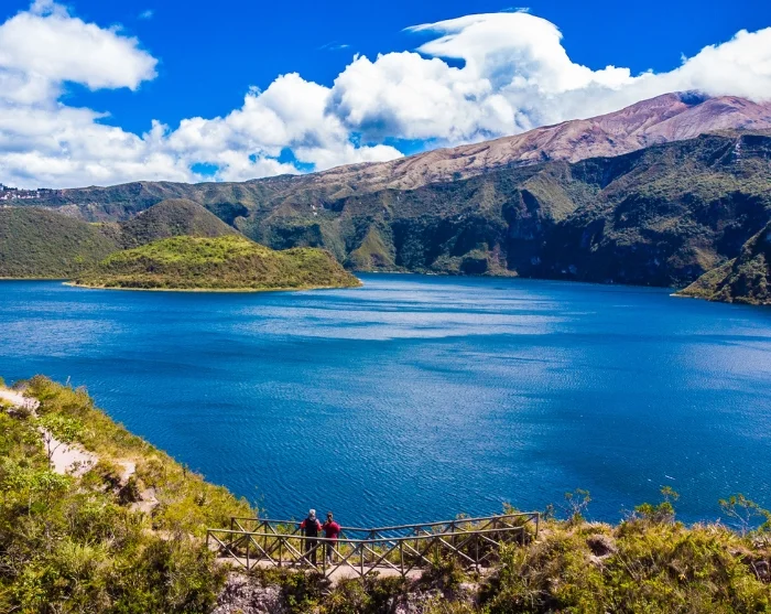 Voordat u terugkeert naar Quito, is er een stop bij het prachtige kratermeer Cuicocha, met twee kleine eilanden verscholen in de heldere vulkanische wateren.
