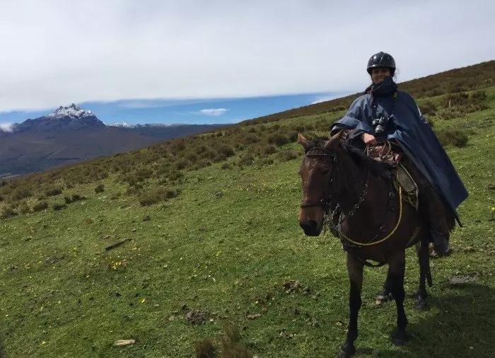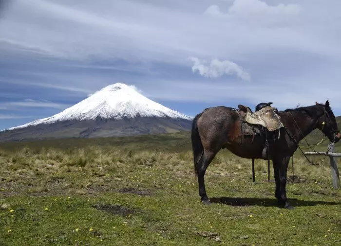 Het paard doet het zware werk op de berghelling van de uitgedoofde vulkaan Rumiñahui, zodat jij rustig de prachtige natuur kunt bewonderen. Je wordt omringd door hoge bergen en vulkanen, en bij helder weer is er een onbeschrijfelijk mooi uitzicht op de besneeuwde vulkaan Cotopaxi.