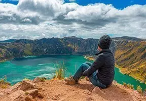 Ten zuiden van Quito ligt het fascinerende kratermeer Quilotoa. Het kratermeer is het resultaat van de uitbarsting van de vulkaan Quilotoa in 1280, die een 250 meter diepe en 3 kilometer brede krater achterliet. Het is een adembenemend uitzicht met het kleurrijke water, dat verandert van volledig turquoise in bijna geel, afhankelijk van de tijd van het jaar waarin je het kratermeer bezoekt.
