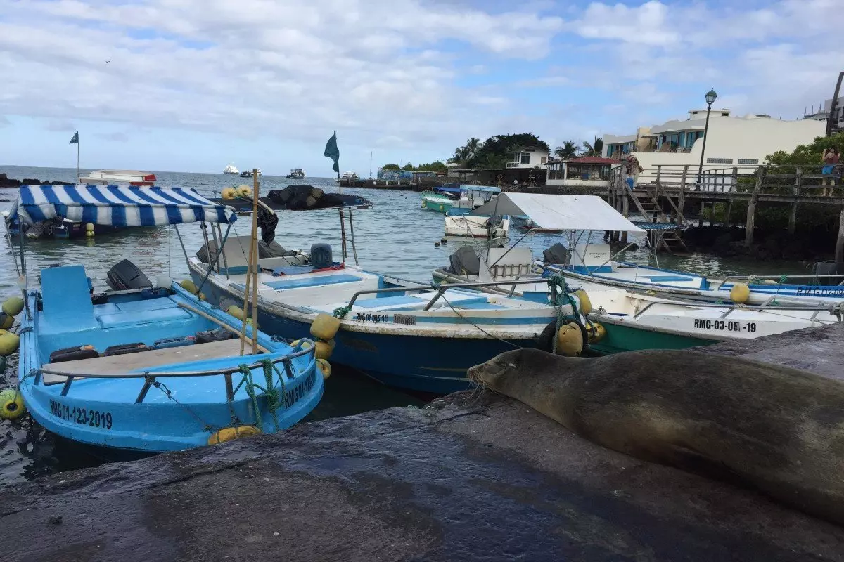 Je kunt ook gewoon ontspannen in Puerto Ayora, waar je ‘s ochtends hongerige en nieuwsgierige pelikanen en zeeleeuwen kunt zien kijken naar de kleine vismarkt op de Avenida Charles Darwin. Aan de steiger is er altijd veel leven, met roggen en witpuntrifhaaien in het water en zeeleguanen en kleurrijke krabben bij de rotsen.