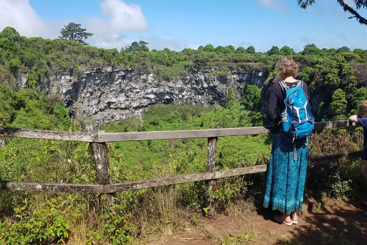 De eerste stop van de dag is bij Los Gemelos, dat ook bekend staat als de tweelingkraters, ondanks het feit dat het geen kraters zijn, maar twee enorme zinkgaten die zich direct naast elkaar bevinden. Rond de tweelingkraters komt je een rijk vogelleven tegen in het weelderige scalesia-bos.