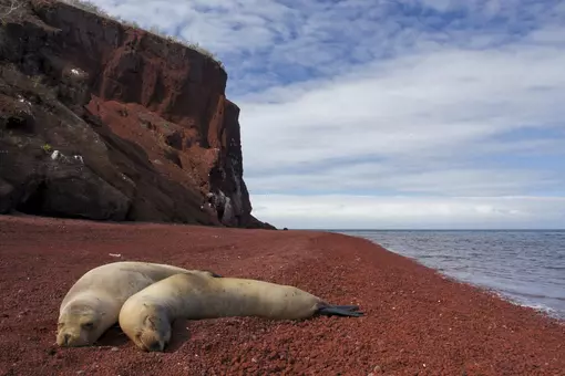 Je bezoekt ook het eiland Rabida, een van de meest kleurrijke eilanden van de archipel met zijn kenmerkende roodbruine zandstrand en enkele geweldige uitkijkpunten.