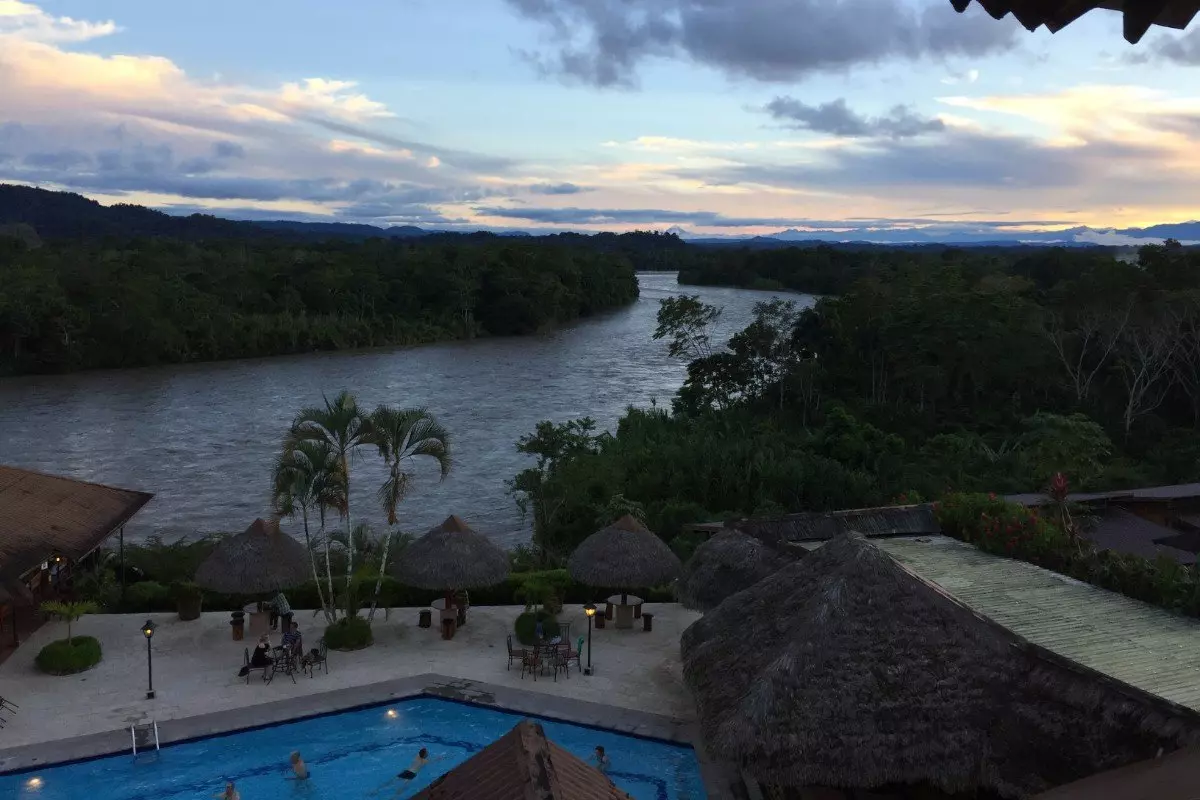 De weg eindigt letterlijk in de Napo-rivier, waar een gemotoriseerde kano wacht om je de laatste stap van de reis naar je jungle-lodge brengt, die zich op ongeveer 40 km van Tena bevindt, omgeven door weelderige jungle. De boottocht duurt ongeveer 15 minuten.